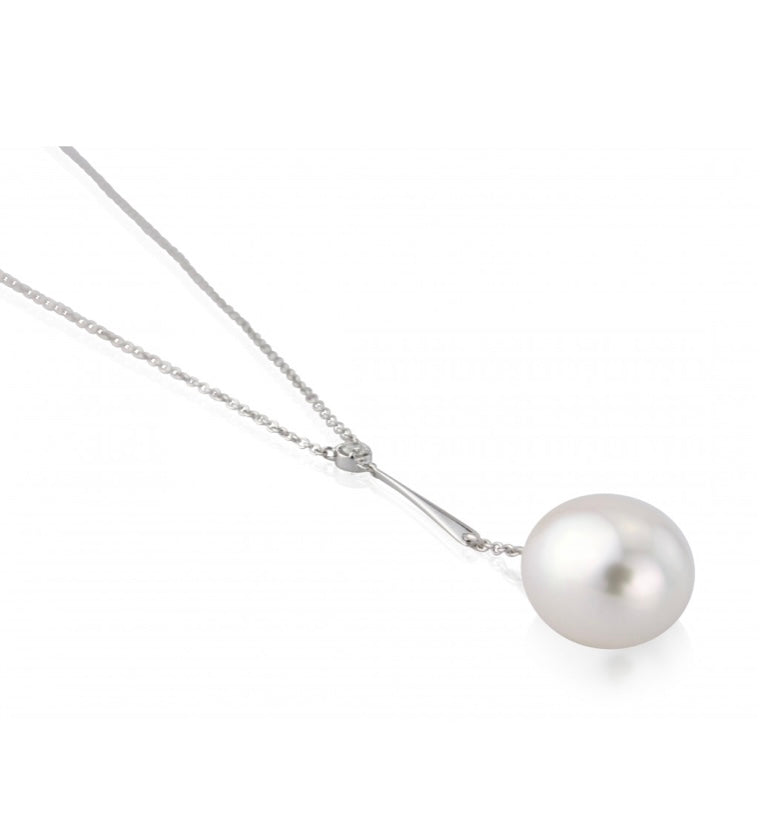White Gold Pearl and Diamond Pendant Necklace