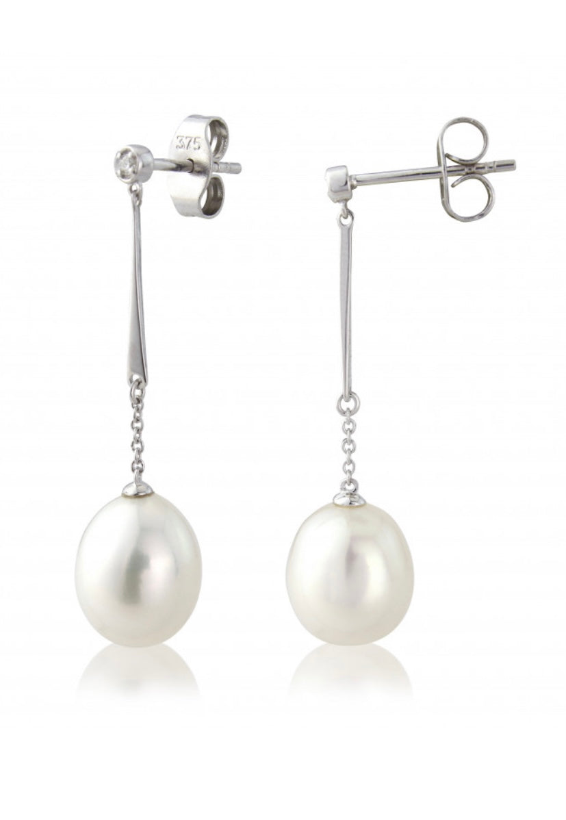 White Gold Pearl and Diamond Drop Earrings